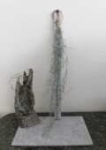 アルミの針金を巻いています。針金をねじってお花をとめて飾ったり、写真のように束ねてつるしたりして飾って下さい。